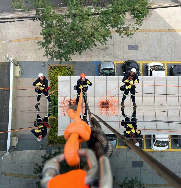 A empresa alia inovação à segurança no trabalho, contando com profissionais certificados em NR11, NR33 e NR35, além de suporte de engenheiro, técnico de segurança e bombeiro resgatista em suas operações.