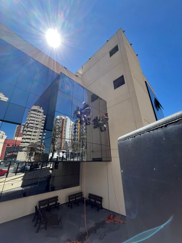 A limpeza de chuva ácida remove manchas e resíduos provocados por poluentes atmosféricos que se acumulam sobre fachadas e vidros.