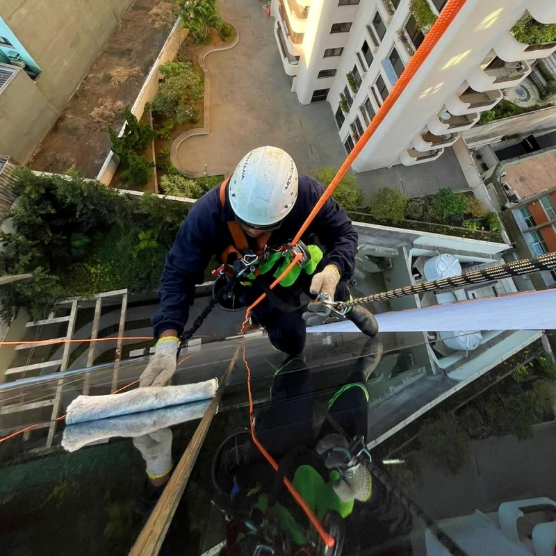 limpeza em altura consiste em higienizar fachadas, vidros e estruturas elevadas utilizando técnicas seguras de alpinismo industrial.